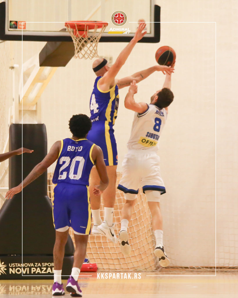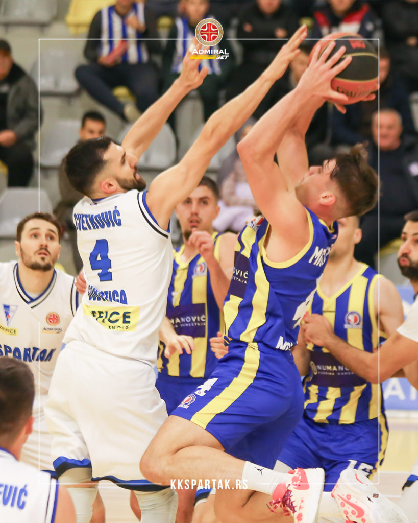 Košarkaši Spartaka dobro su otvorili meč. Do 12. minuta bili su u vođstvu (19:20), ali su domaći zahvaljujući Gutalju i Bojdu uspeli da do kraja poluvremena uspostave rezultatsku ravnotežu sa subotičkom ekipom.