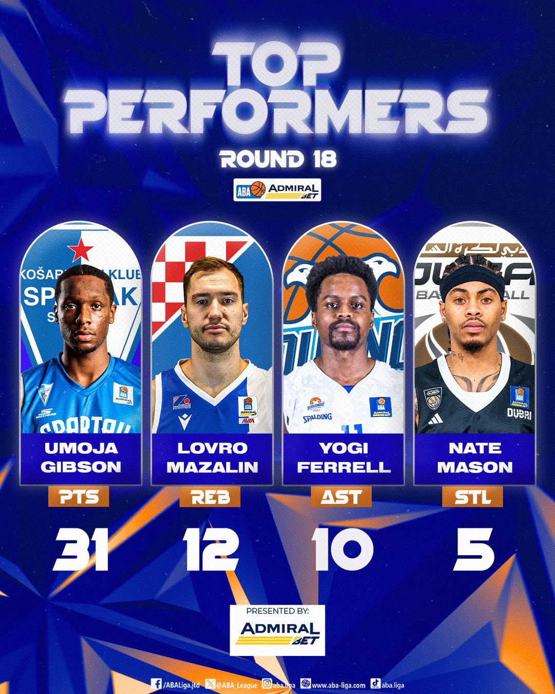 UMOJA GIBSON MVP 18. KOLA 28/01/2025 Naš igrač Umoja Gibson najbolji je strelac 18. kola AdmiralBet ABA lige, pošto je postigao 31 poen u utakmici protiv ekipe Krke, najviše među svim igračima 18. kola AdmiralBet ABA lige. Bravo! 💪🏼 izvor: aba-liga.com