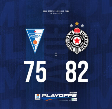 ZAVRŠENA JE PRVA UTAKMICA PLAYOFF-A AdmiralBet ABA LIGE 09/05/2025 Ekipa Partizan povela je sa jedan prema nula u seriji sa Spartakom u četvrtfinalu plej-ofa....
