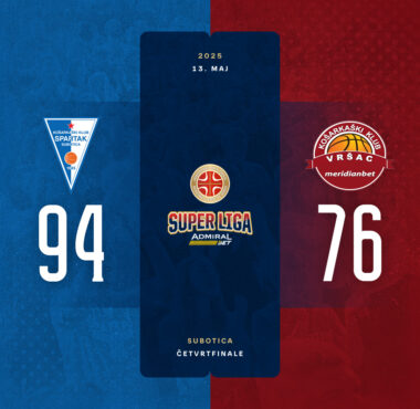 Spartak savladao Vršac i poveo u četvrtfinalnoj seriji Super lige 13/05/2025 SPARTAK OFFICE SHOES - VRŠAC MERIDIANBET 94:76...